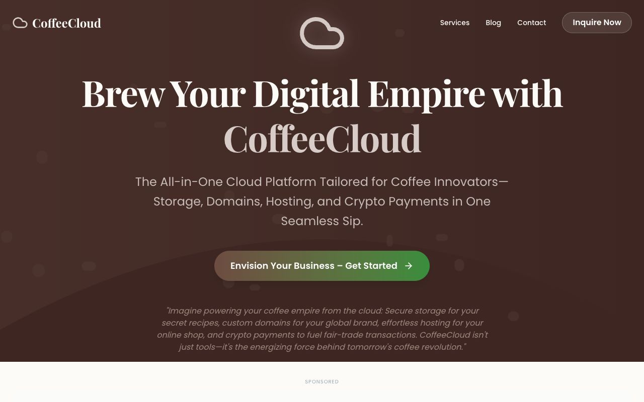 Complete the secure form below to inquire about pricing, partnership, or acquisition details for coffeecloud.com.