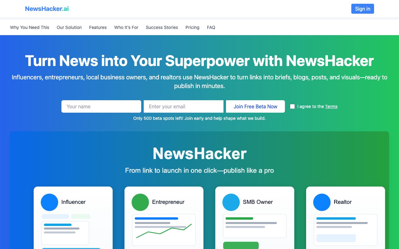 newshacker.ai aggregates stories from countless sources, delivers concise unbiased summaries, flags potential spin, tracks narrative evolution, and answers follow-up questions with sourced insights. Users stay informed without overload, making smarter decisions in a fragmented media landscape. This emerges as the go-to truth engine for professionals, researchers, and engaged citizens.